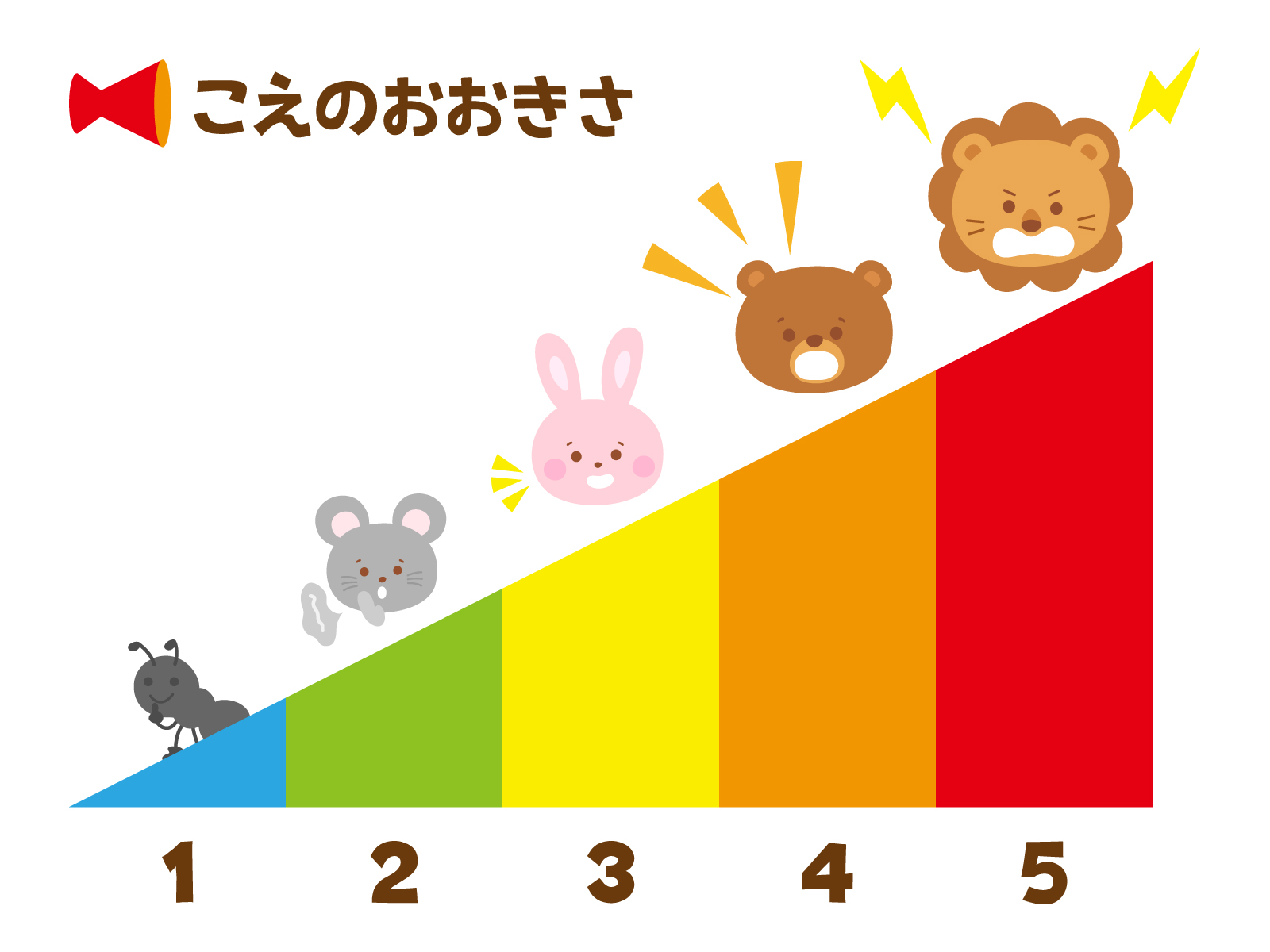 文字や絵を使って、子どもが目で見て分かるような声の大きさ表を用意してみてください。