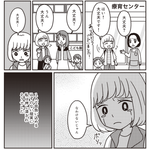 孤独な育児に押しつぶされそうになりながら、療育の先生や家族、友人に「大丈夫?」と聞かれても「大丈夫!」と笑顔で返すしかありませんでした。